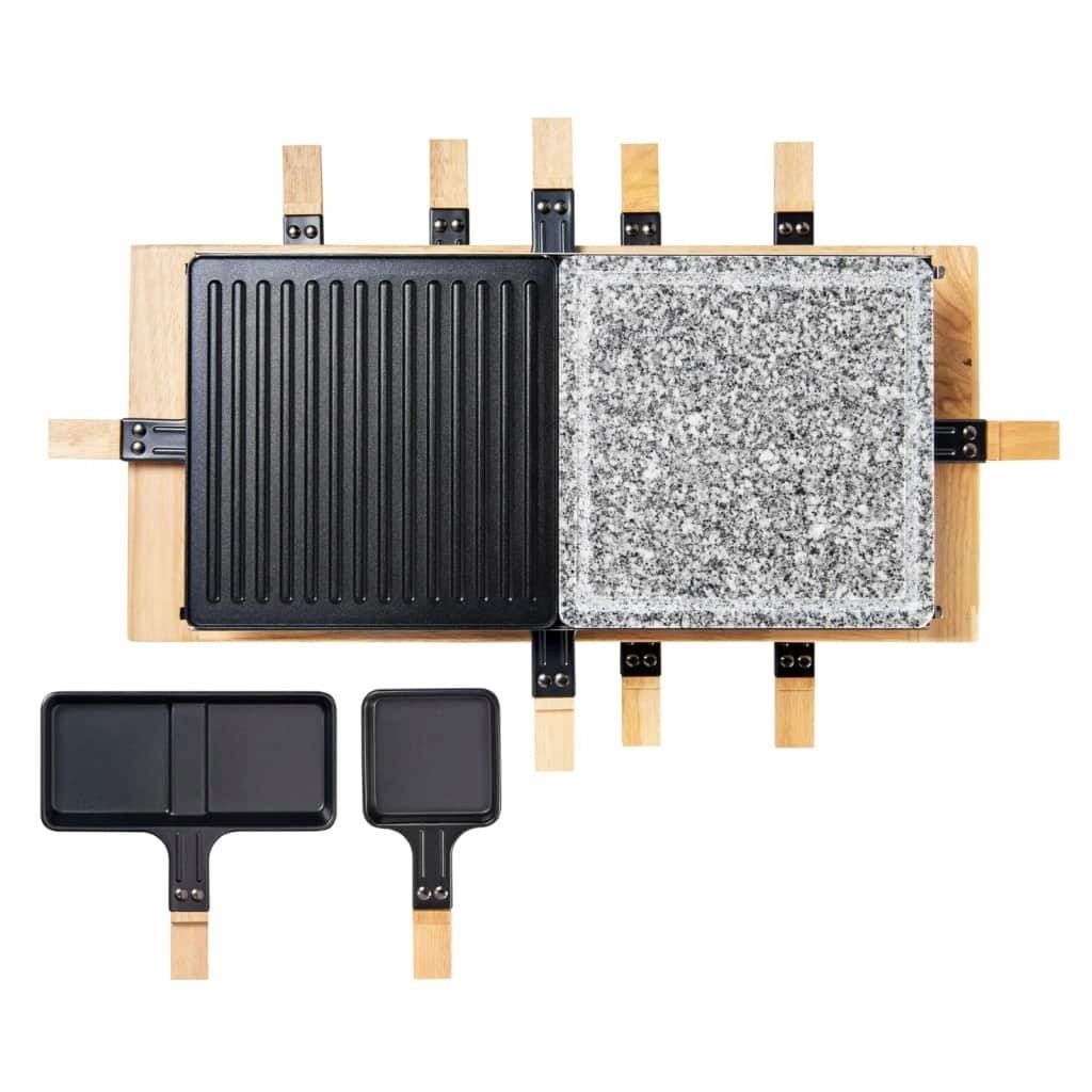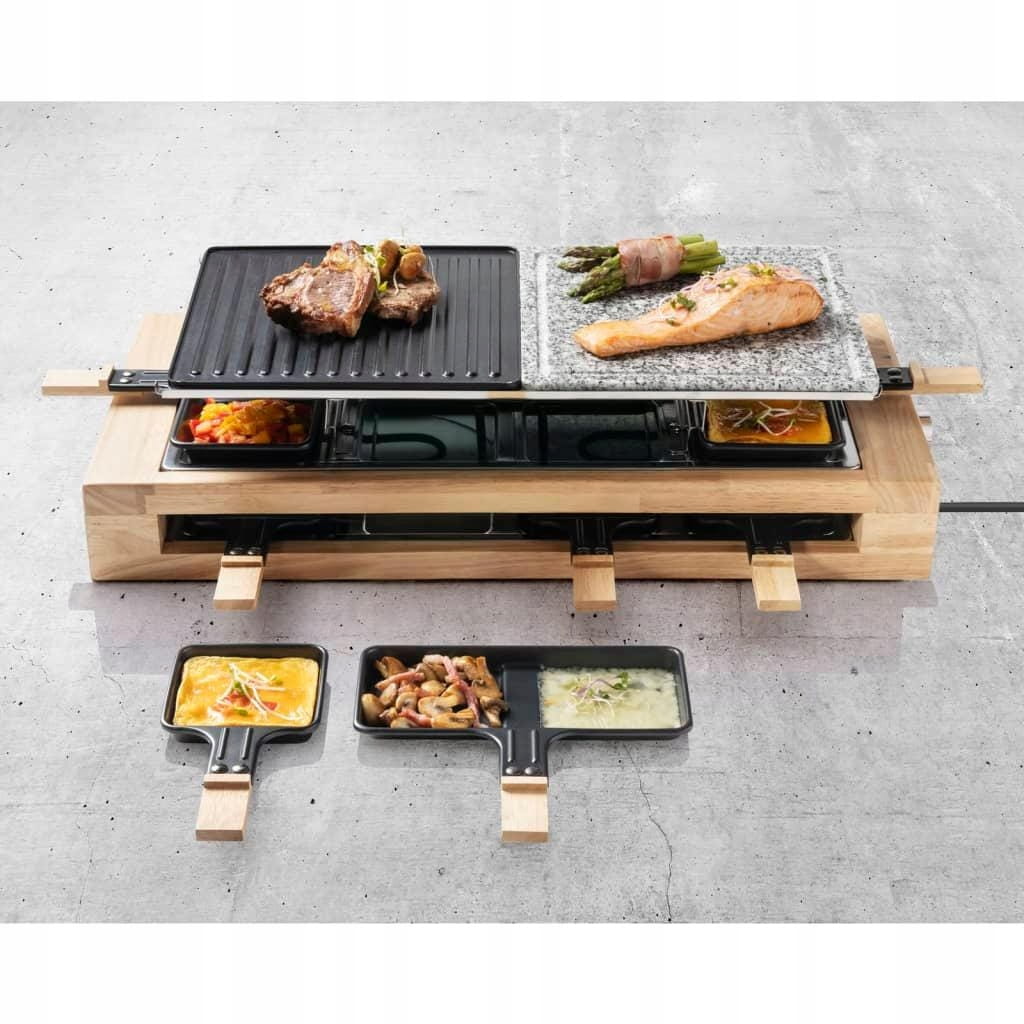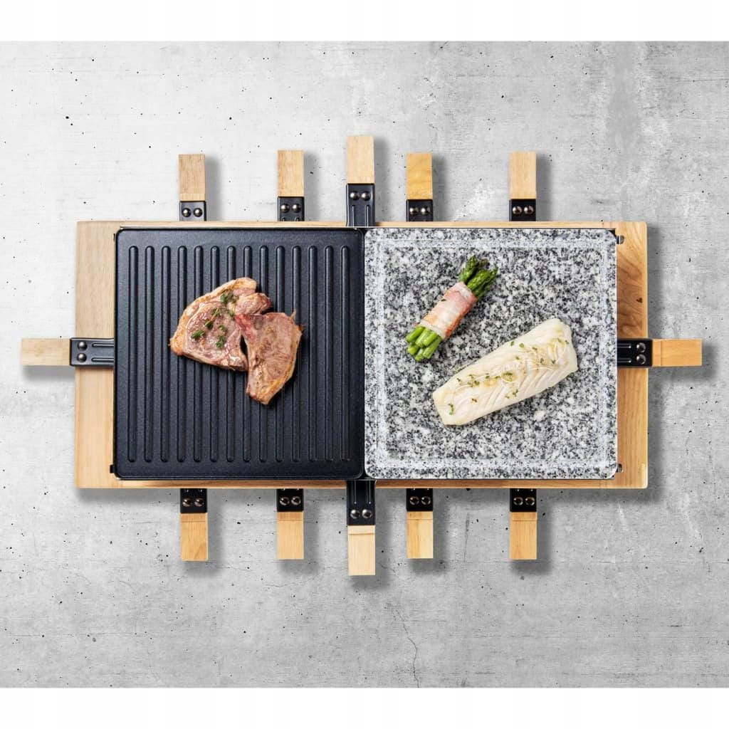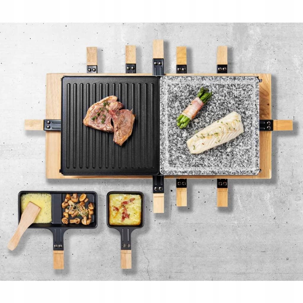 - Duża raclette z naturalnym kamieniem do grillowania i płytą grillową zapewnia wspaniałą zabawę na imprezie dla maksymalnie 8 osób i bezpośrednia przyjemność przy stole w jadalni, na balkonie, tarasie lub w ogrodzie