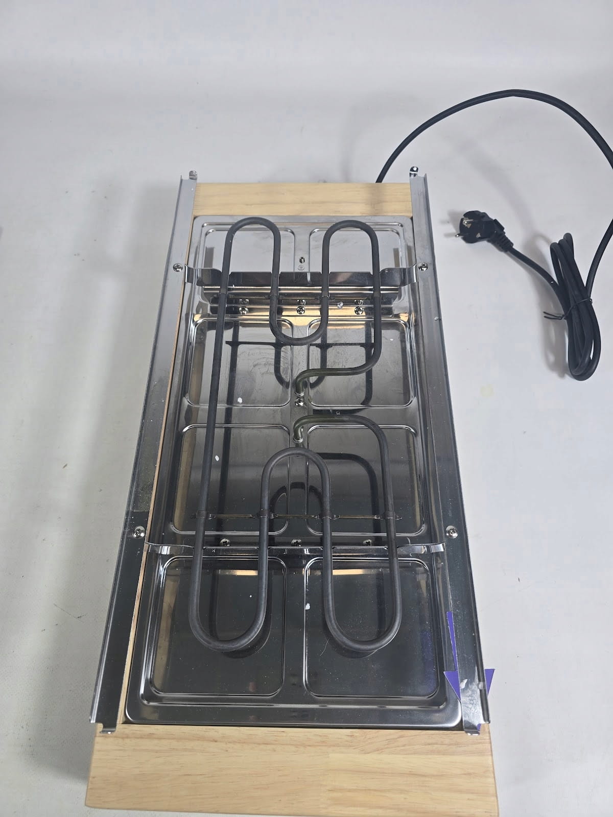 - Szybki czas nagrzewania dzięki maksymalnej mocy 1500 W, łatwa obsługa dzięki bezstopniowej regulacji temperatury z lampką kontrolną, wysokiej jakości drewniany design