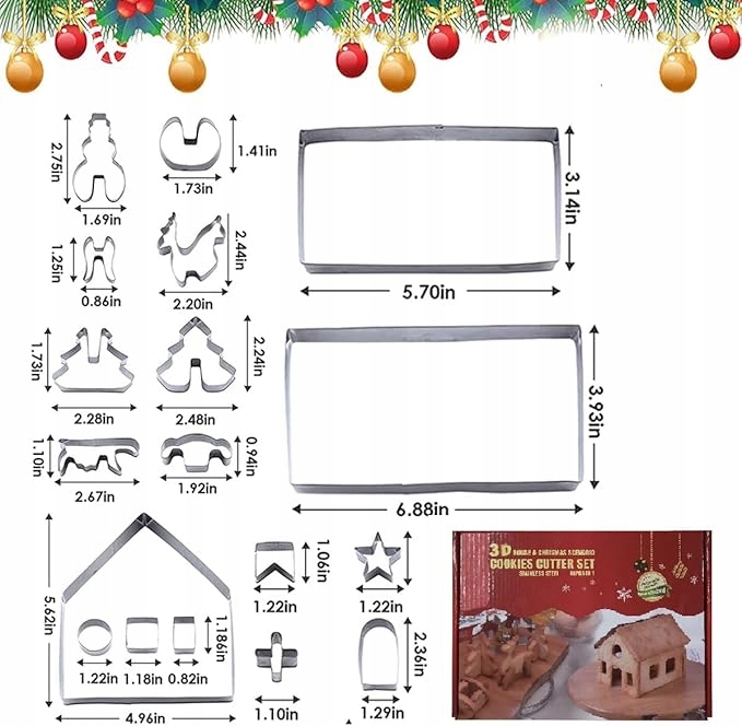 - Zestaw foremek do wycinania ciasteczek świątecznych: 18 różnych foremek do wycinania ciasteczek świątecznych. Możesz zrobić domki bożonarodzeniowe, domki z piernika, klasyczne domki, choinki, płatki śniegu, gwiazdy, sanie i łosie bożonarodzeniowe. Ta foremka do ciastek idealnie nadaje się do dekorowania ciasteczek z dziećmi