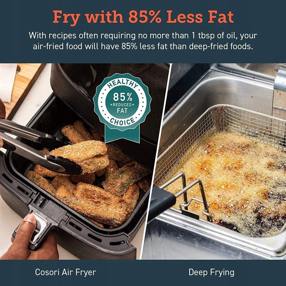 ✅ 85% mniej tłuszczu w jedzeniu