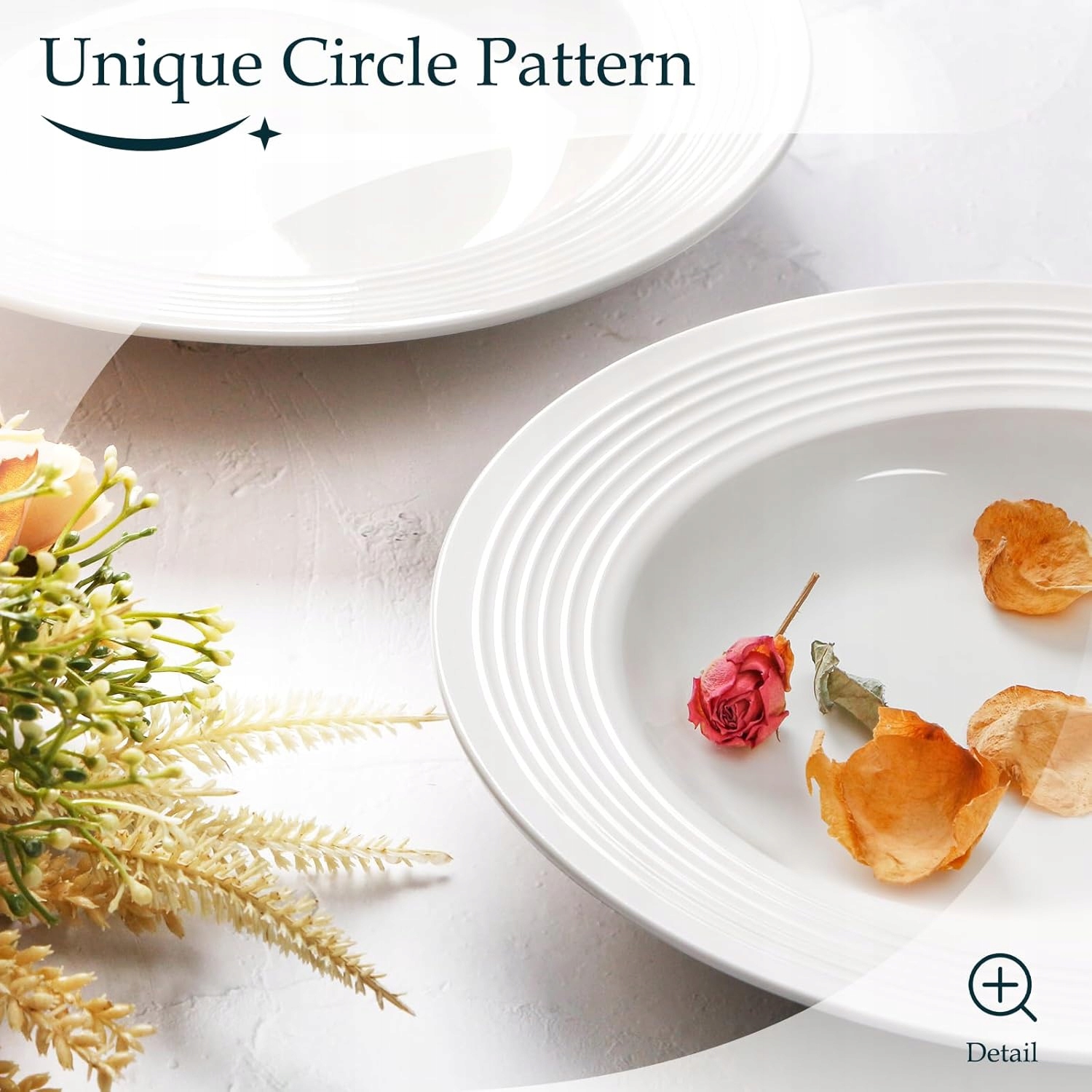 - ?【Wzór linii okręgu】Płyty dodają unikalny wzór okręgu, który nadaje całemu talerzowi elegancki i zwiewny wygląd. Sprawiając, że Twój stół będzie wyglądał piękniej