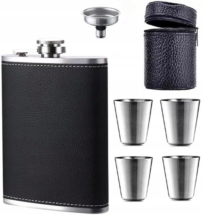 - 4 Przenośny: jest kompaktowy i przenośny, idealnie nadaje się do noszenia w kieszeni lub kieszeni spodni. Spawanie laserowe zapewnia szczelne uszczelnienie, a zakręcana pokrywka zapewnia bezpieczeństwo napoju. Aby upewnić się, że wódka, whisky lub inne ulubione napoje nie wyciekają ani nie zostaną zmarnowane.