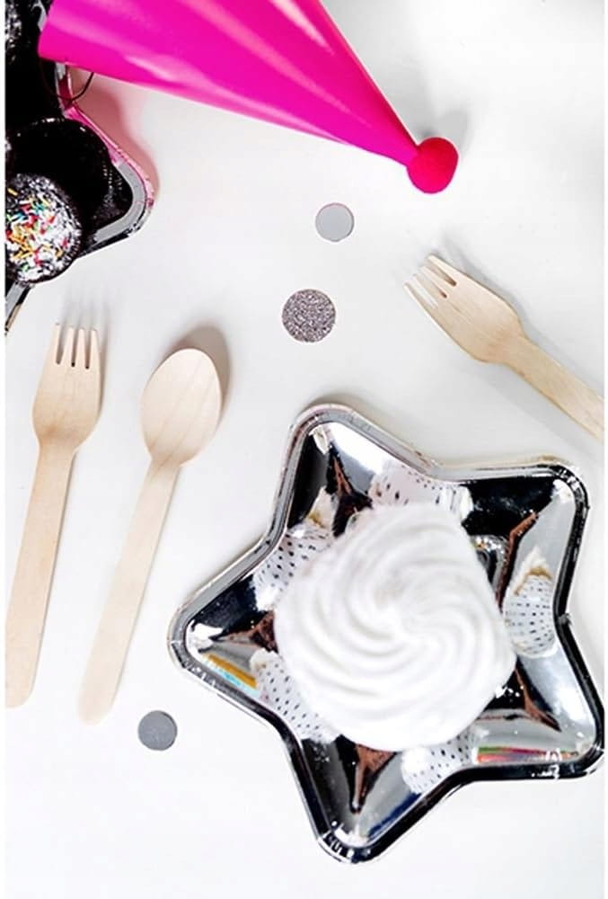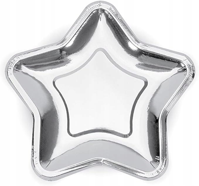 TALERZE PAPIEROWE W KSZTAŁCIE GWIAZDY SREBRNE 6 SZTUK PARTY DECO 18 CM