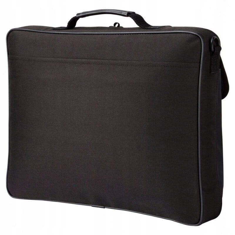 - Naramienna torba do laptopa o przekątnej 15.6 cali w kolorze czarnym wykonana z poliestru.