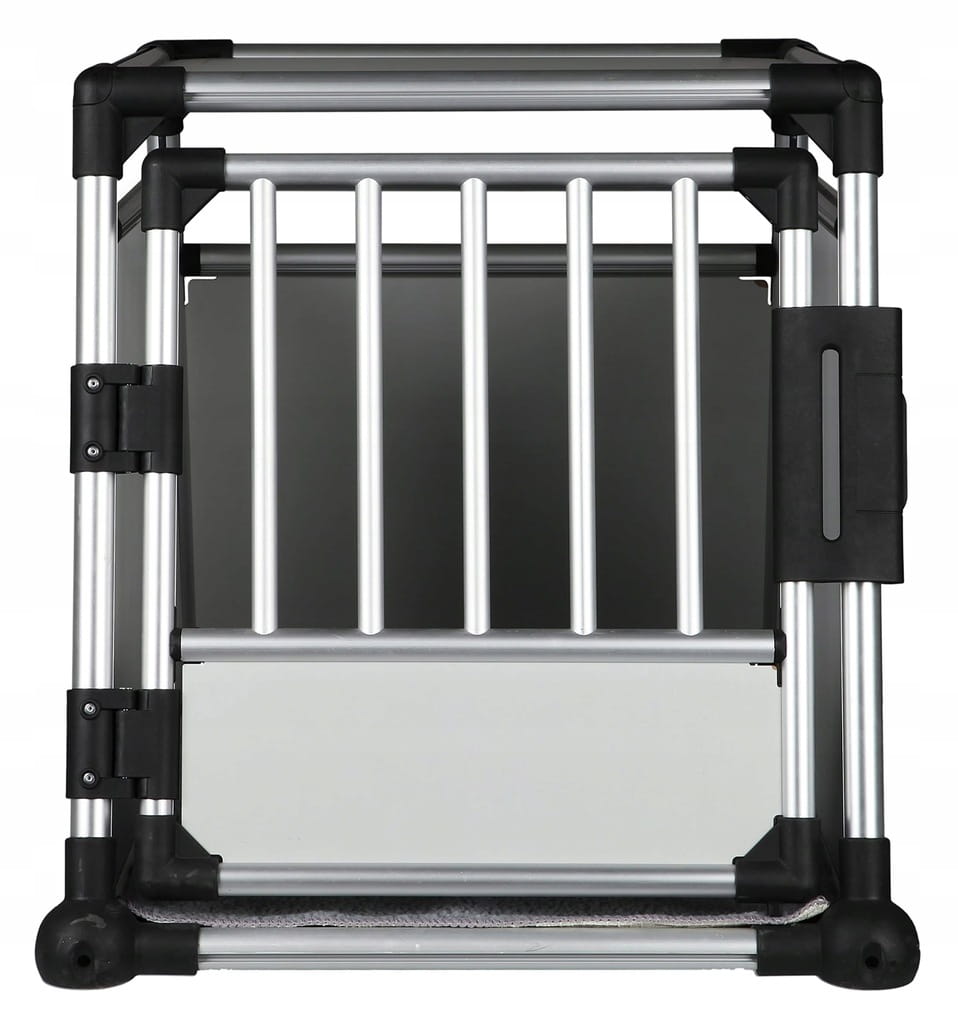 - Drzwi z zamknięciem zabezpieczającym. Waga zwierzęcia (lbs): 70; otwarcie: 58 × 52 cm