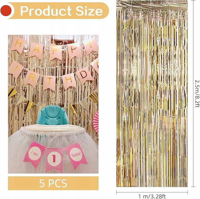 - zestaw 5 sztuk, każde opakowanie ma wymiary 1 m x 2,5 m. Zasłona foliowa ma długość 2 m, idealna długość obejmuje duży obszar i może pokryć cały obszar, który wymaga zmiany. Idealny do dekoracji wewnątrz lub na zewnątrz, aby stworzyć idealne tło dekoracyjne.