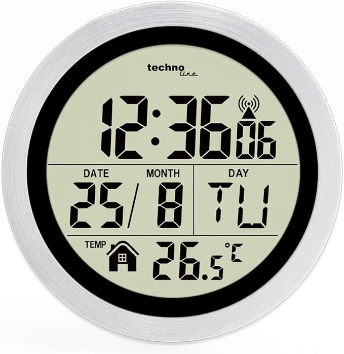ZEGAR ŚCIENNY TECHNOLINE WT3005 CYFROWY RADIOWY BIAŁY 14,7CM NOWOCZESNY